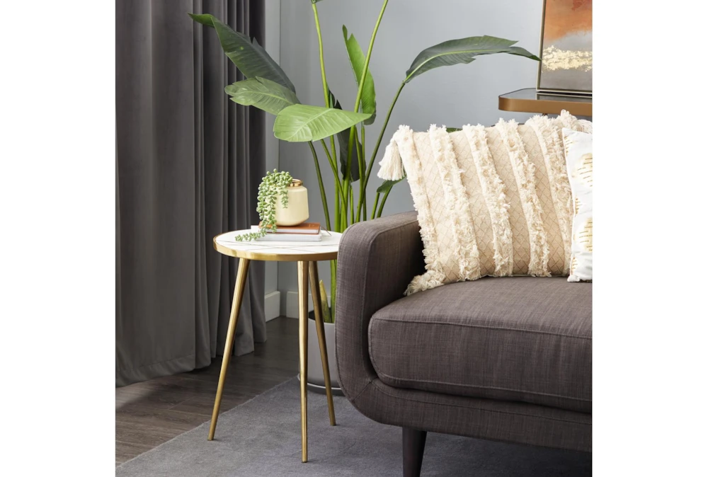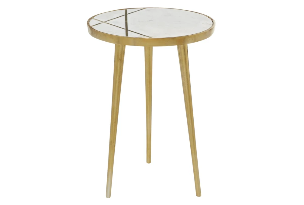 This 20 inch round accent table boasts a stunning marble top with a gold-finished metal base, adding a touch of glamour to any contemporary living space.