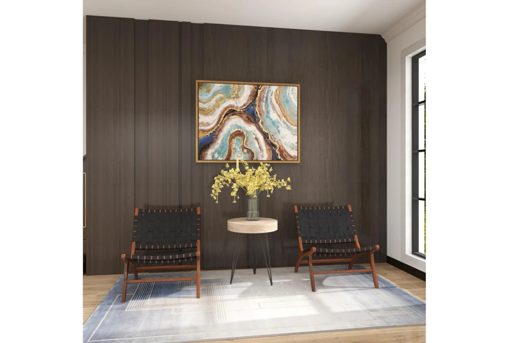 - The unique blend of materials creates a visually appealing focal point in any room