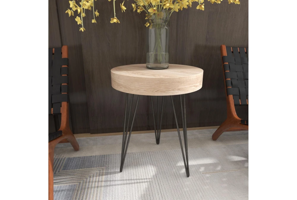 This 20 inch round accent table boasts a modern design that combines wood and iron, making it a stylish addition to any room. The table comes fully assembled and features an industrial style that is both trendy and functional.