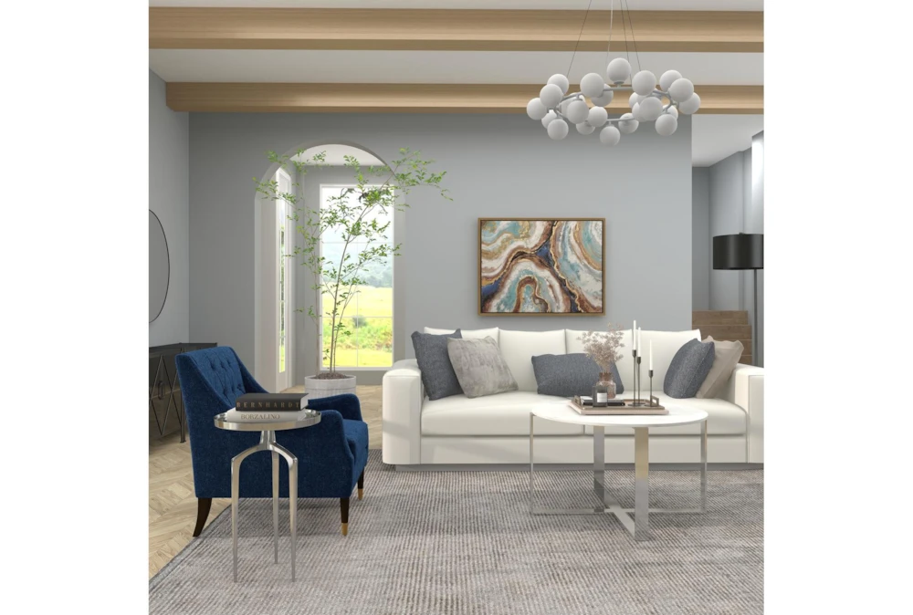 This 25 inch silver modern tripod round accent table is the perfect addition to any contemporary space, with its sleek design and multi-media material. It is both functional and stylish, making it a versatile piece that can be used in any room.