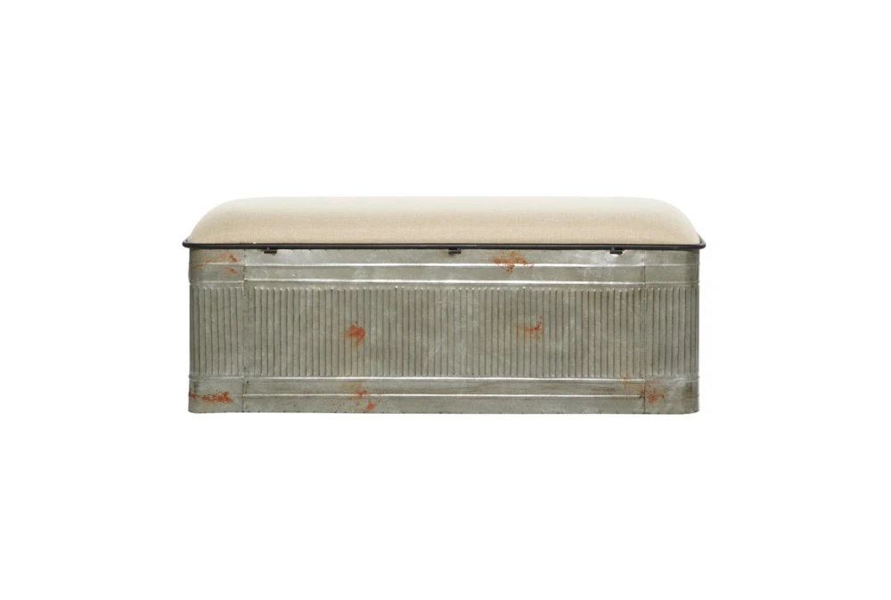 This 50X18 Grey Iron Storage Bench is the perfect addition to any rustic-inspired home decor, featuring both storage and a comfortable cushion. Made with sturdy metal, this bench is as durable as it is stylish.