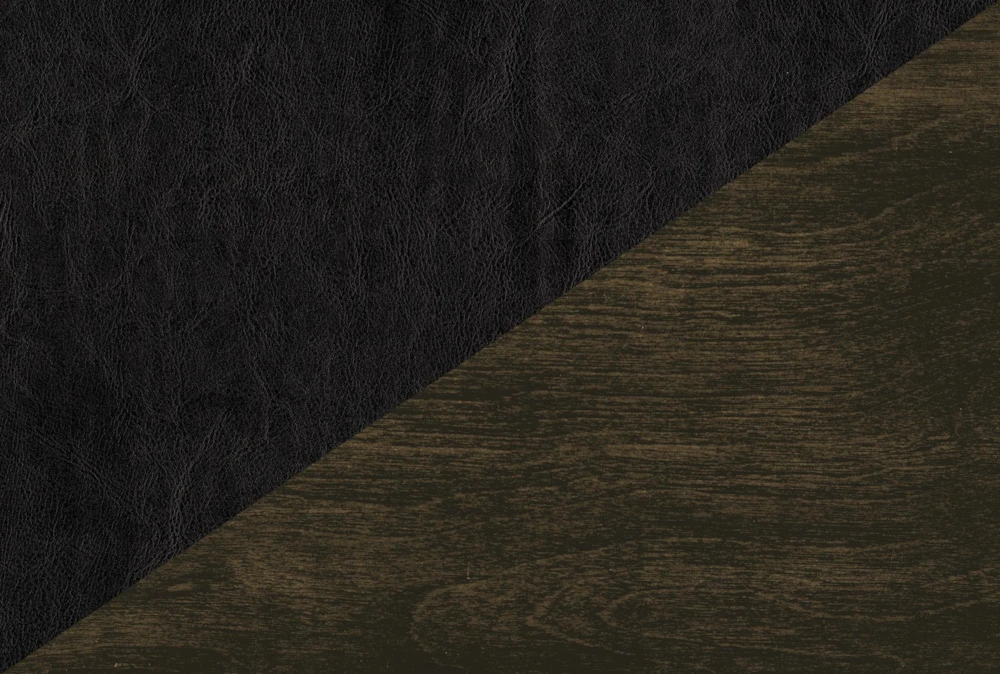The Adina Dining Set For 4 is a rustic 5 piece set made of wood and dolomite, perfect for any dining room. The set features chairs with cushion, tapered legs, and a slat back, all made of acacia wood, birch veneer, engineered wood, and faux leather in a charcoal brown color. Assembly is required.