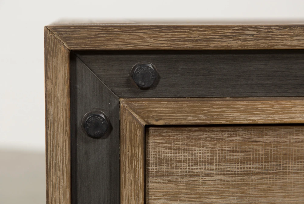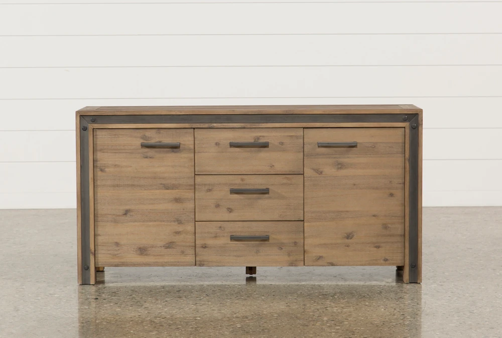 The marriage of metal and wood has never been more solid. Distinguished by an updated industrial look, our Amos buffet boasts acacia and veneer construction. Streamlined yet unique, this design will redefine mealtime.
