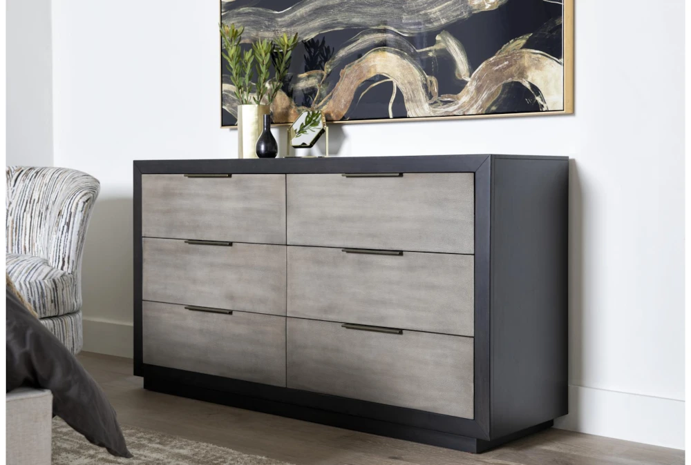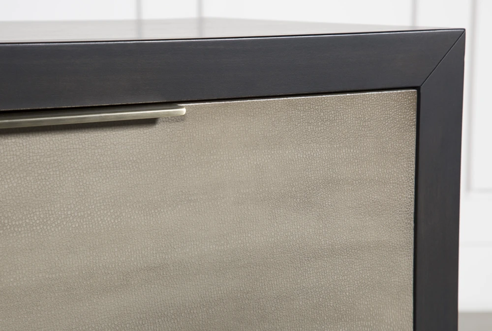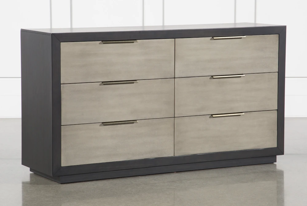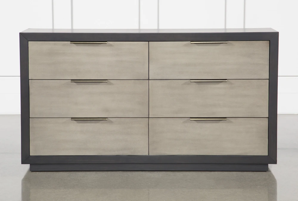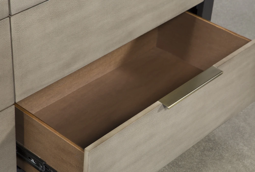 Take your bedroom storage to a new level of style with our Bayliss dresser. Featuring a beautiful mix of materials, the design is uniquely crafted to provide plenty of space for clothes, accessories and essentials. In addition to solid wood and MDF, this piece boasts drawers that are wrapped in faux shagreen. Shagreen is a decorative sharkskin material with a rough scaled texture.