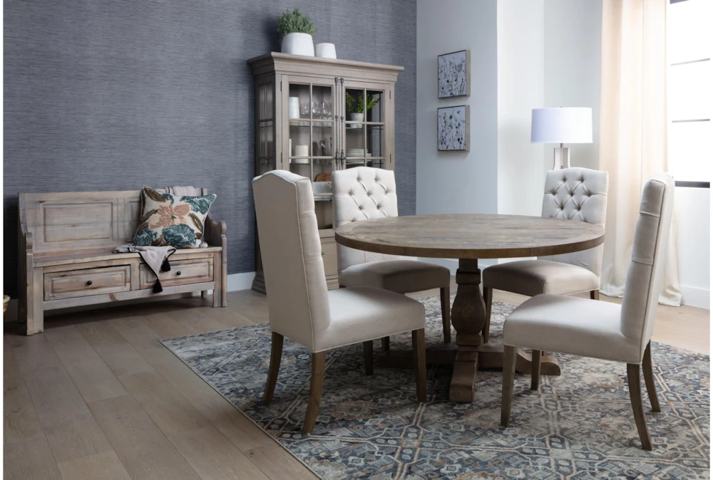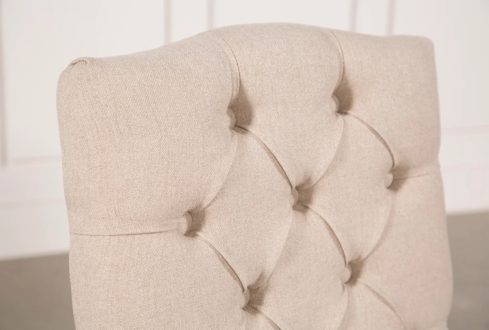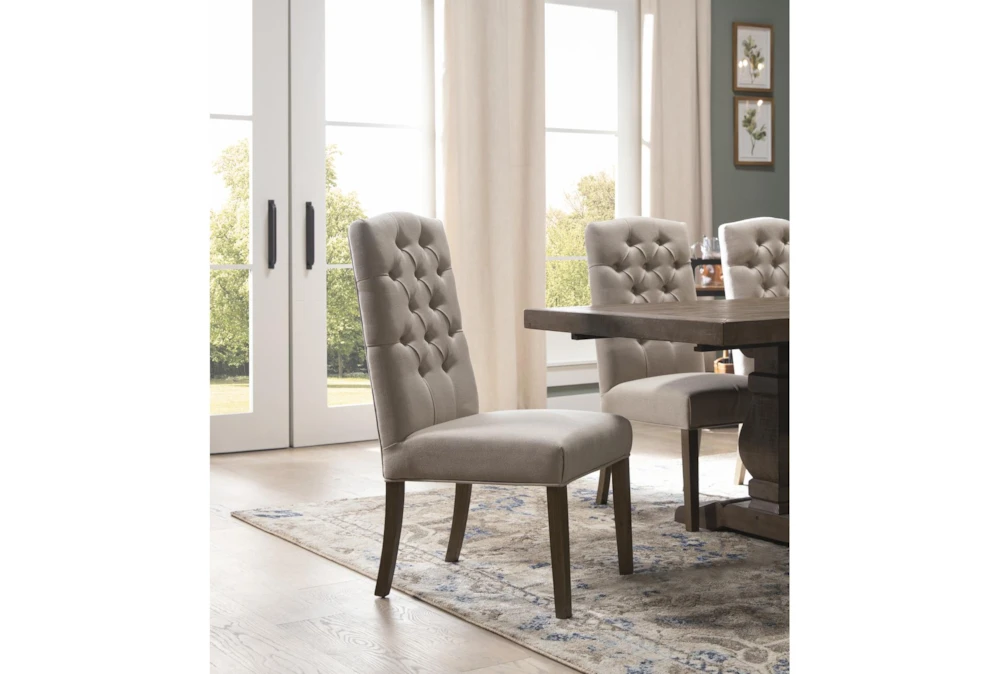 You’ll be the host with the most confidence and elegance when your guests experience our Biltmore side chair. Distinguished by subtle camelback curves, deep button tufting and legs in a rustic coffee finish, this design boasts classic features that will bring warmth and charm to your dining space. The solid wood frame and durable polyester blend upholstery also ensure you can enjoy the seat for years to come.