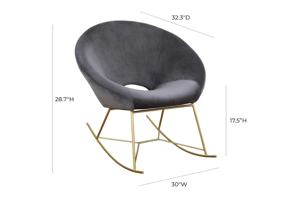 The Blake Grey Rocking Chair is a contemporary style chair made of fabric and metal. It is grey in color and requires minor assembly.