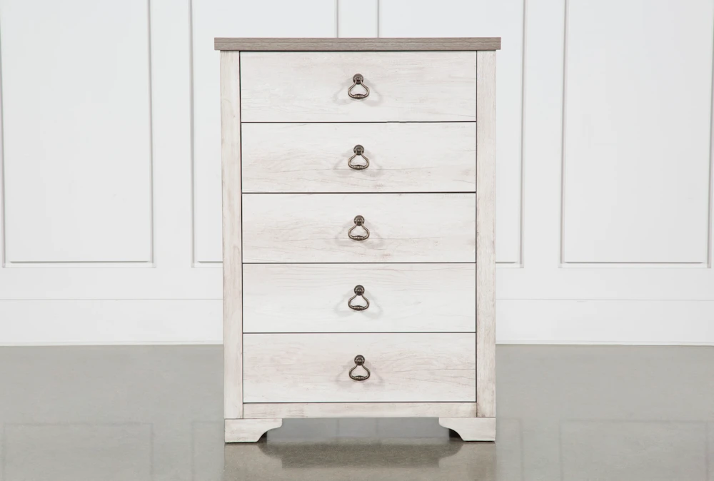 An elegant rustic design that invites you to enjoy charming style in your bedroom, our Cassie chest is the perfect addition to your sleep space. A two-toned finish and graceful hardware give this piece a sense of traditional farmhouse character that will give you a sense of pride in your furniture. And the price tag will make you want to brag to all your friends and family about this phenomenal value.