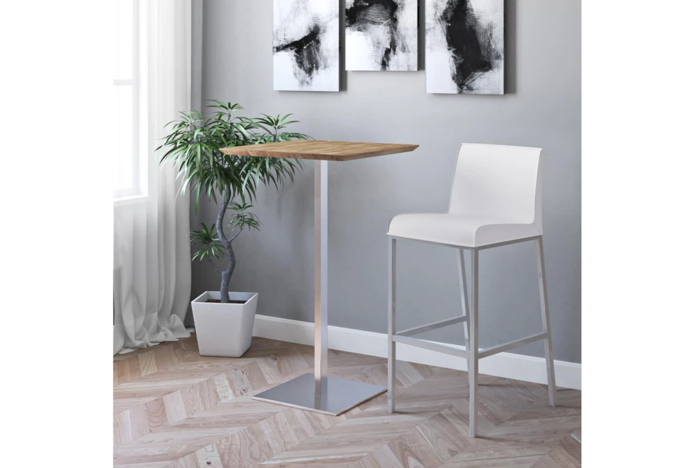 Elodie-B 24″ Bar Table in Walnut with Brushed Stainless Steel Column and Base