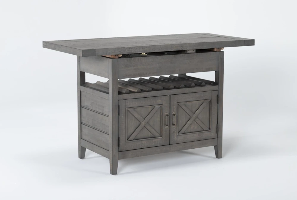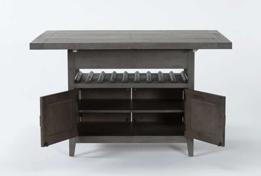 Take everyday entertaining to new heights with our Concord counter dining table. Crafted with hardwood, solid pine and pine veneers, the piece is decked in a cadet grey finish that adds rustic warmth and character. It features a 16” self-storing butterfly leaf and storage cabinet that is topped by a convenient wine bottle rack.