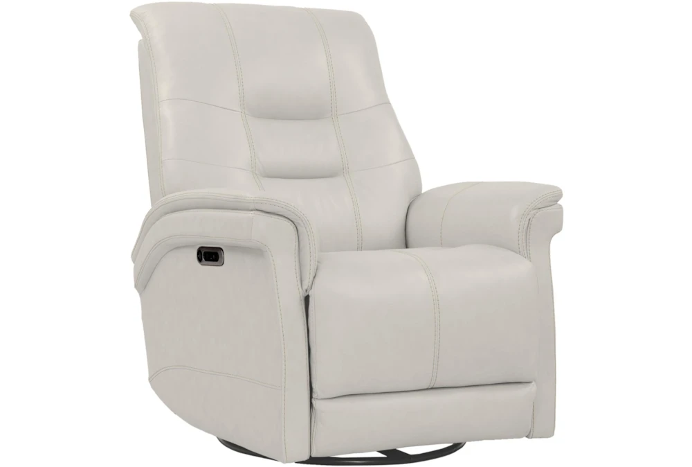 This Crew Ivory Leather Power Cordless Swivel Glider Recliner is a must-have for any casual living room. With adjustable headrests and a USB port, this chair provides both comfort and convenience. Its swivel feature adds a touch of versatility to any space.
