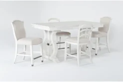 Martin 66″ Counter With Wood Back And Upholstered Counter Stools Set For 6
