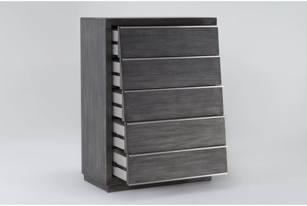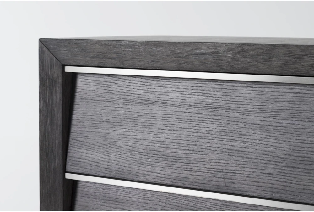 Transform your bedroom into a contemporary sanctuary with our striking Echo bedroom collection. Various materials and textures combine to create unique designs that are at once sophisticated and inviting. Through a mix of solid hardwood, oak veneers and stainless steel trim, the construction achieves one-of-a-kind personality, quality and durability. While upholstery on the headboard adds a cozy touch, the wire-brushed finish and custom hardware bring special, thoughtful detail.