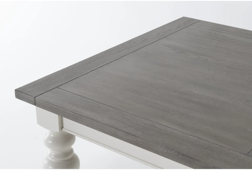 To create a warm, welcoming setting, all you need is our Edward dining collection. Friends and family will want to gather for meals and memories when they see these classic Farmhouse-inspired designs. Crafted with solid hardwood and oak veneer, the set includes a grand two-tone table with graceful turned legs, a coordinating bench and white and grey Windsor-style chairs. You can mix, match and make it yours by coming up with your own custom combination. For storing entertaining essentials, there’s a striking sideboard that houses everything.
