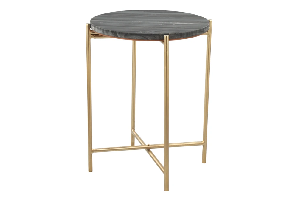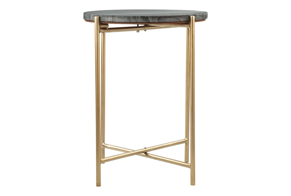 This modern Gray & Gold Marble Top Side Table is the perfect addition to any stylish living space, crafted from durable metal and featuring a sleek and sophisticated design. With its elegant appearance and sturdy construction, this side table is sure to impress guests and provide a reliable and functional surface for all your favorite items.