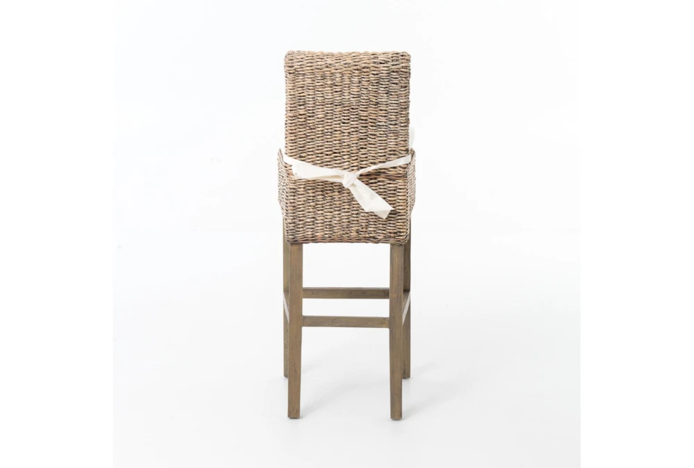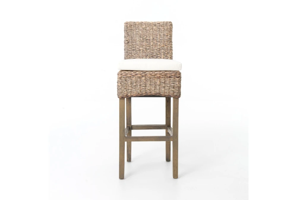 This Grey Banana Leaf Counter Stool comes with a cushion and features a casual style. The stool is made of 100% cotton with solid mahogany and banana leaf accents, and has a grey wash finish.