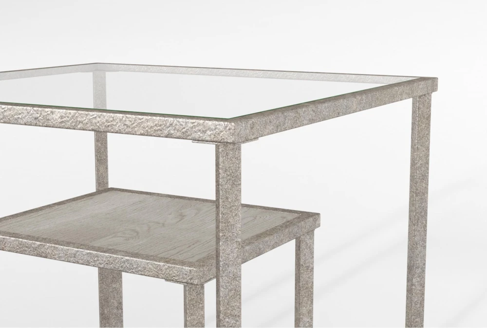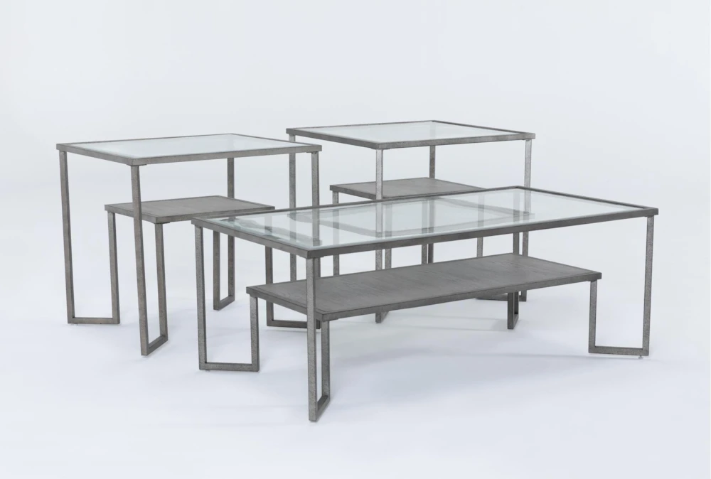 Uniquely designed to bring style and function to your living room, our Harlow occasional tables will elevate anything you put on display. In addition to top glass tiers, they boast secondary tiers made with oak veneer, plus sturdy metal frames in a zinc finish. Together, these materials create chic modern spots for magazines, books and accessories.