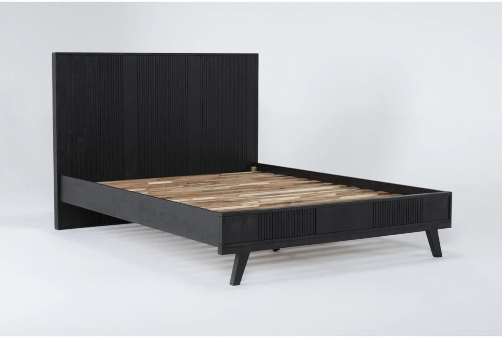 If unique is what you seek, look no further than our distinctive Joren bedroom collection. Defined by its edgy modern style, this set boasts cool, contemporary character highlighted by reeding detail that adds decorative dimension. Mature acacia wood in a black, lightly sand-blasted finish ensures strength and quality, while two bed options – storage and non-storage – allow you to choose what’s best for your needs. Even the nightstand includes USB ports for added ease and convenience.