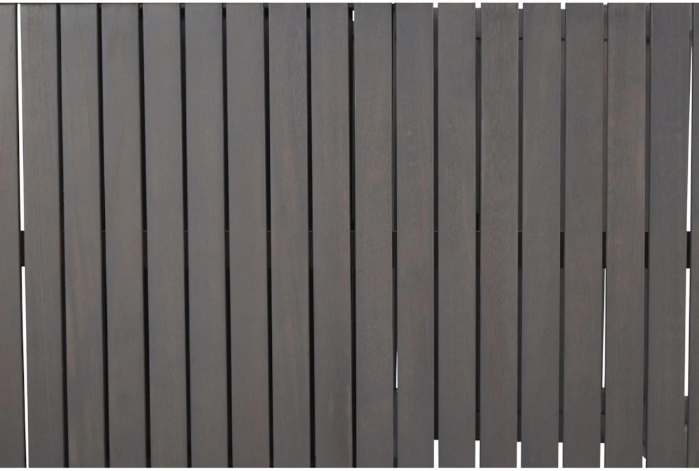 Made of acacia wood. Durable gray colored polyurethane finish. Stainless steel hardware. Slatted shelves. Removeable serving tray. Bottle and wine glass holder. Wheels on front for mobility.