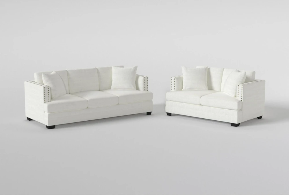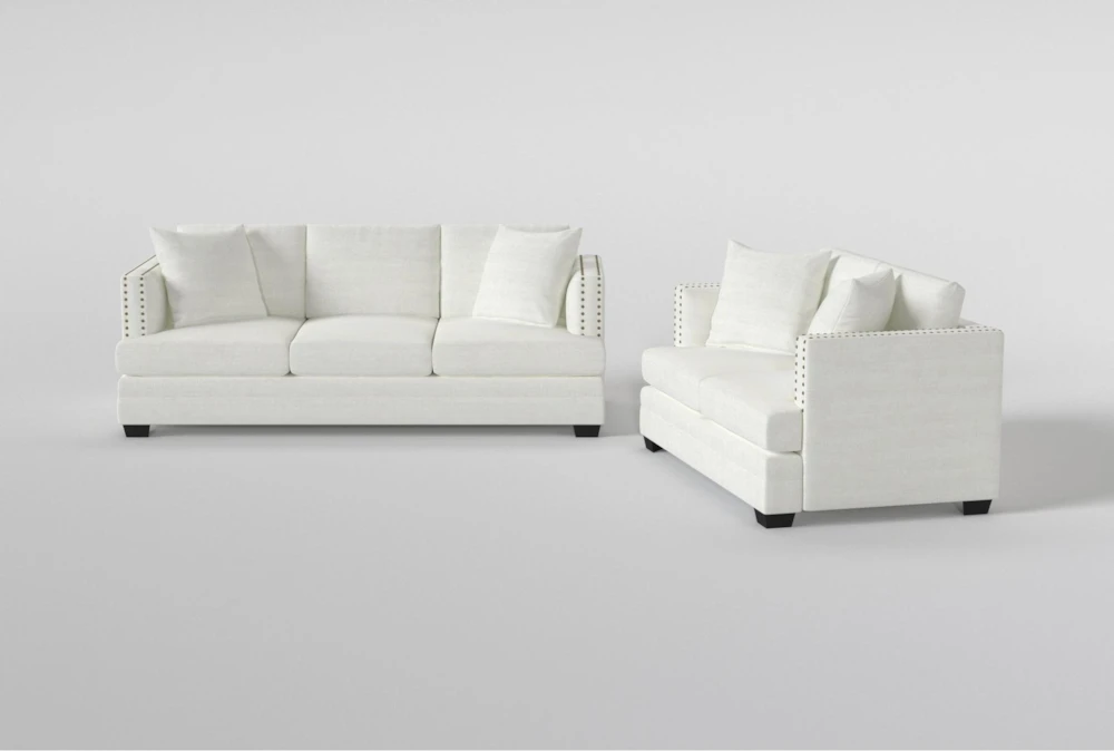 Clean lines meet classic details on our chic Kiara sofa. Trimmed with nailhead accents, sleek track arms add bold, distinctive style, while tailored upholstery keeps the look soft and sophisticated. Cushions on the firmer side provide the perfect balance of support and comfort for seamless lounging. Through our Special Order program, you can customize the fabric at no extra cost.
