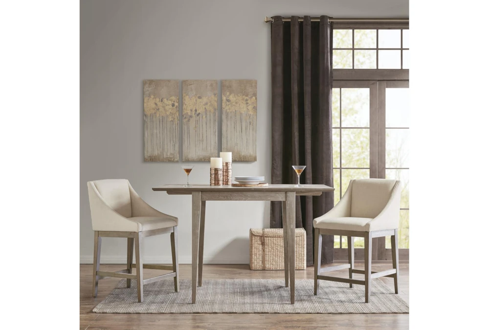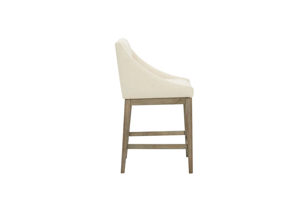 The Luke 26″ Counter Stool features a tall back and cushioned upholstered seat for ultimate comfort in a casual style. Made with reclaimed wood legs and a natural color, assembly is required and the stool comes in a cream fabric with a high density foam filling.