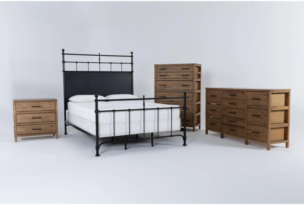 A piece like the vintage-inspired Trellis bed from Magnolia Home by Joanna Gaines brings the charm of the past into your space. The higher profile headboard is a focal point of the design, which features a solid metal panel. Accented with vertical and horizontal elements, as well as ball finials and dainty castings, it blends feminine and masculine details to create a distinctive retreat.