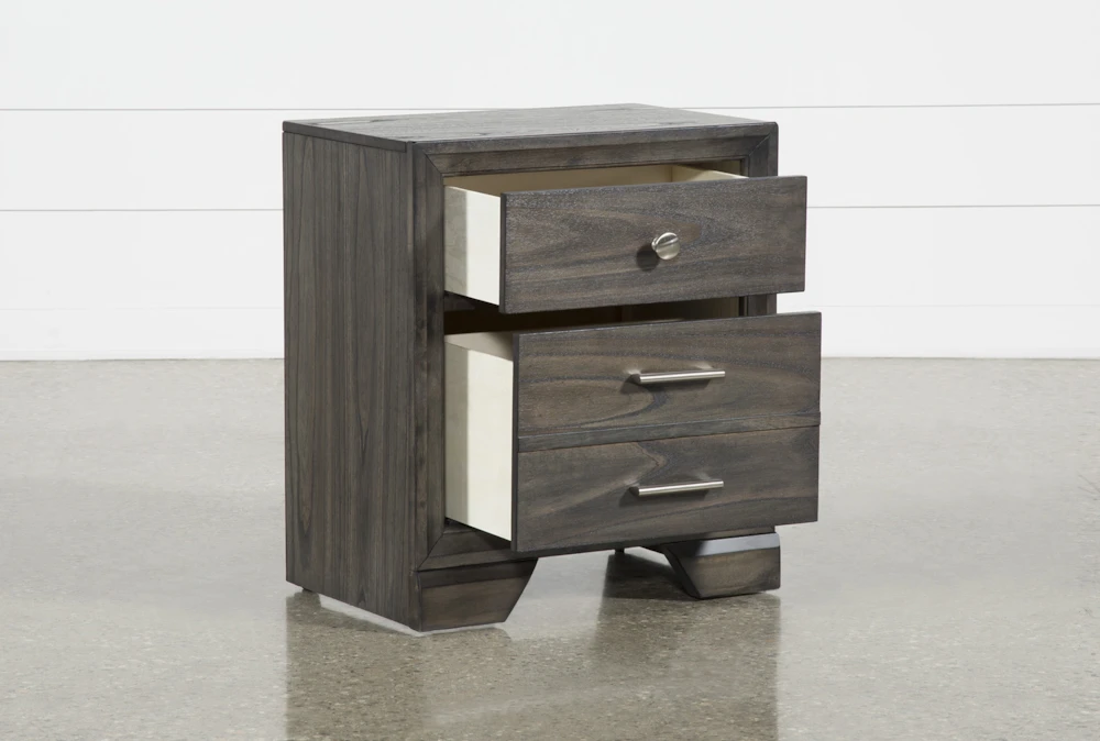 Bring sophistication and function to your bedroom at a phenomenal value with our Malloy nightstand. Crafted with handsome, durable wood and veneer, this design features drawers for stowing away bedside essentials.