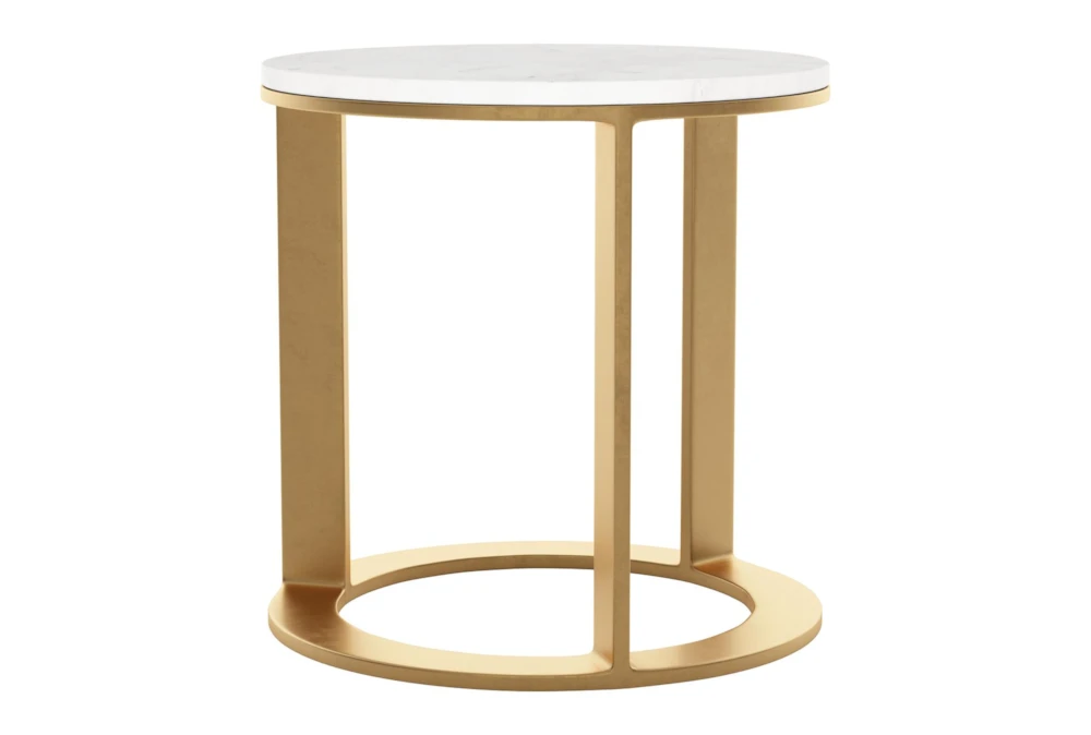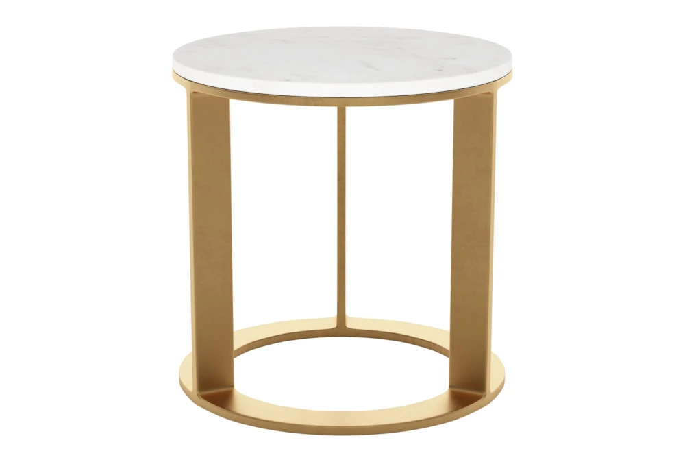 This Marble & Circular Gold Base Side Table is the epitome of modern elegance, featuring a stunning marble top and a sleek metallic base that is already assembled for your convenience. It effortlessly blends sophistication and functionality, making it the perfect addition to any contemporary living space.