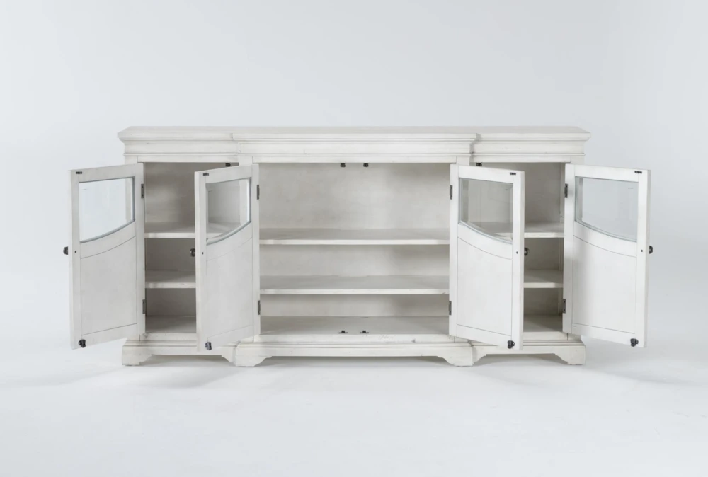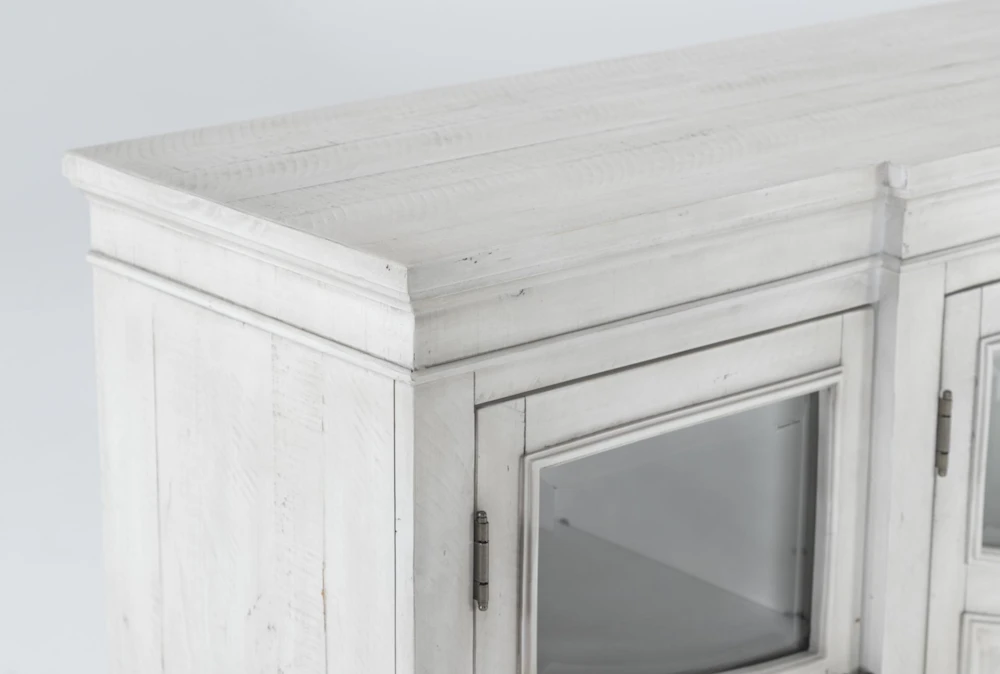 Start new traditions and celebrate special occasions with the help of our grand Martin server. Graceful lines distinguish the elegant design, which boasts durable pine construction, classic details and a variety of convenient features. In addition to 4 wood doors with glass inserts and 2 adjustable shelves behind each, there is wire management. The piece features a distressed rubbed-through finish to showcase the wood’s authentic, natural characteristics