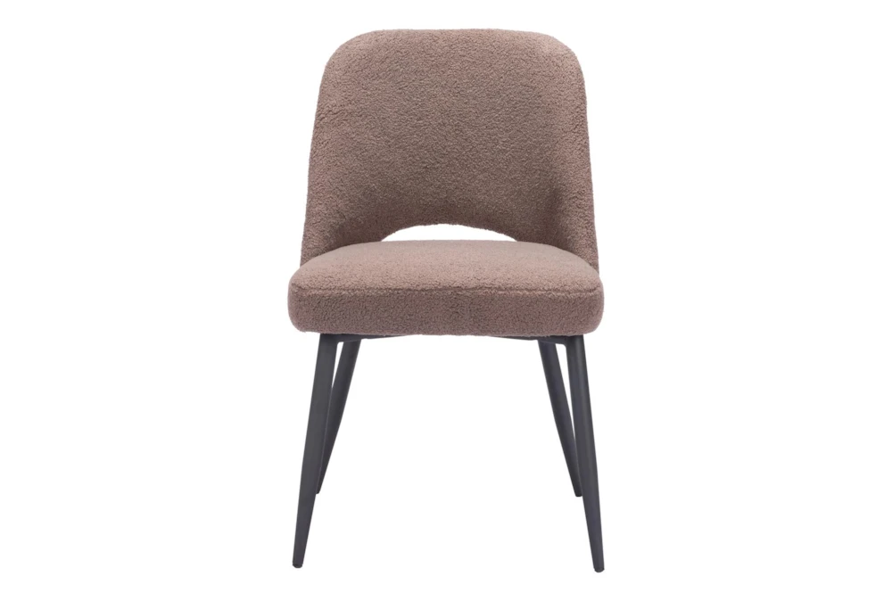 This Modern Brown Dining Chair Set Of 2 features a curved, armless design with a back for comfortable seating. Made with a combination of metal, wood, fabric, and foam, assembly is required for these stylish chairs to be ready for use in your dining room.