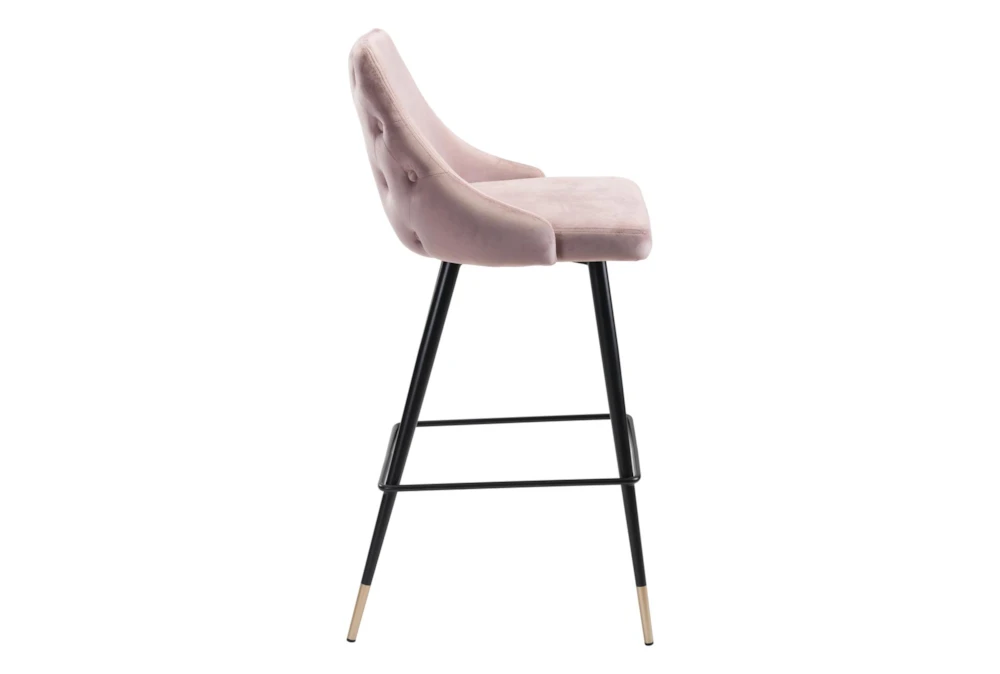 The Piccol Pink Bar Stool is a modern, tufted stool made of pink metal perfect for any dining room. Assembly is required and it features 100% polyester foam seating for one person.
