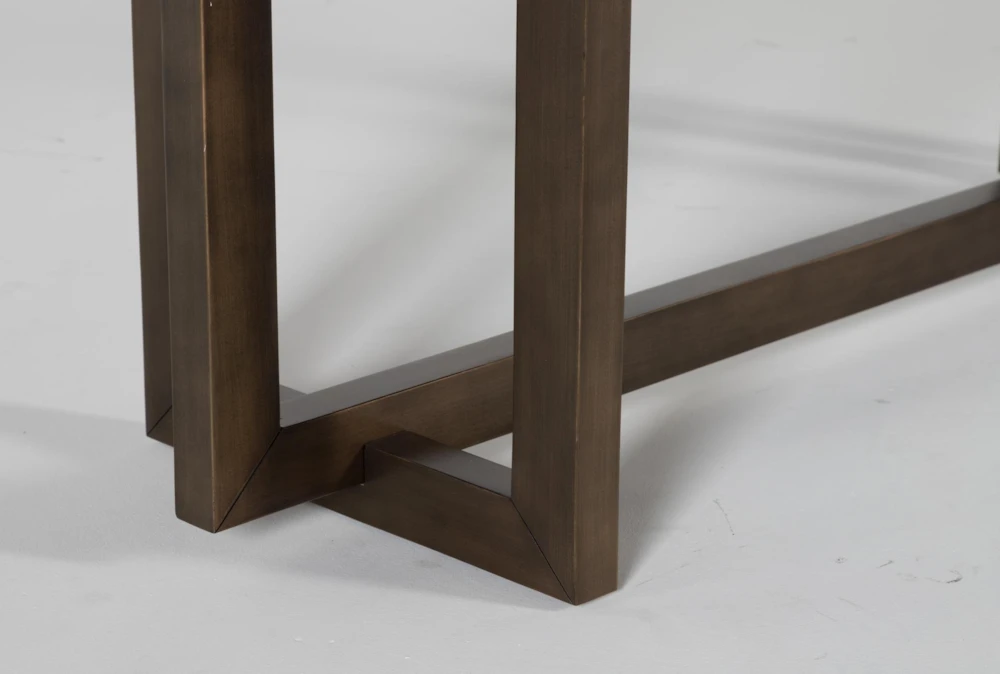 Bringing new meaning to clean living, our Pierce Espresso dining table lends airy, streamlined style to every meal. A sleek, minimalist profile distinguishes the design, which features sturdy hardwood and oak construction in a rich umber finish. It dazzles with a strikingly architectural base that is painted bronze for a metal look.