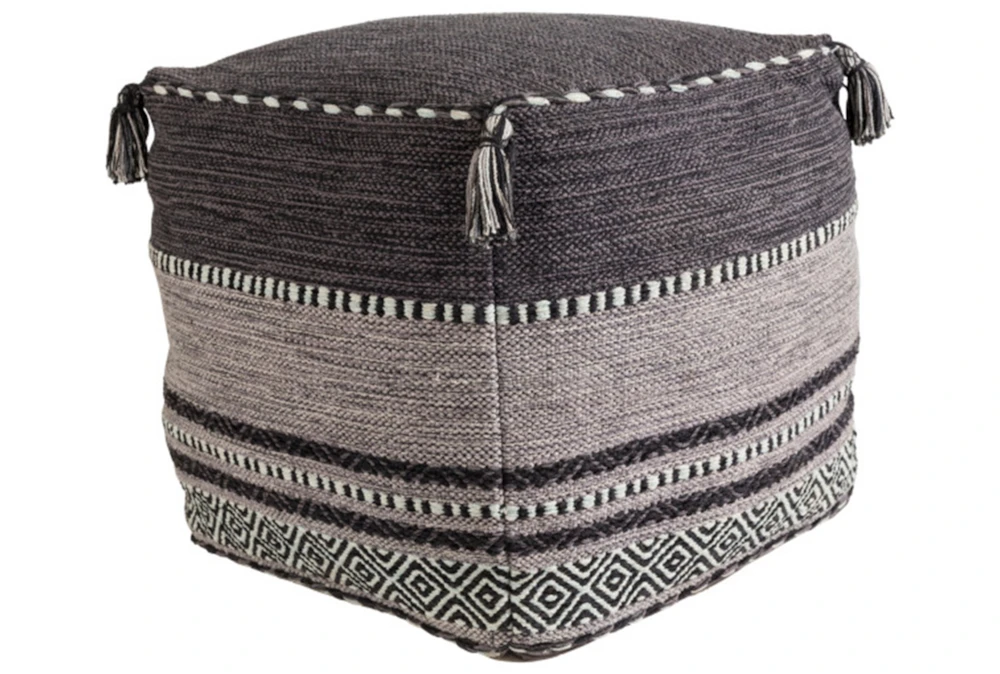 This black and grey tassled pouf features fringe and a casual style. Made with fiber and secondary cotton material, it is perfect for any living room or kids’ room. With UPS parcel shipping, it’s easy to bring comfort and style to your home.