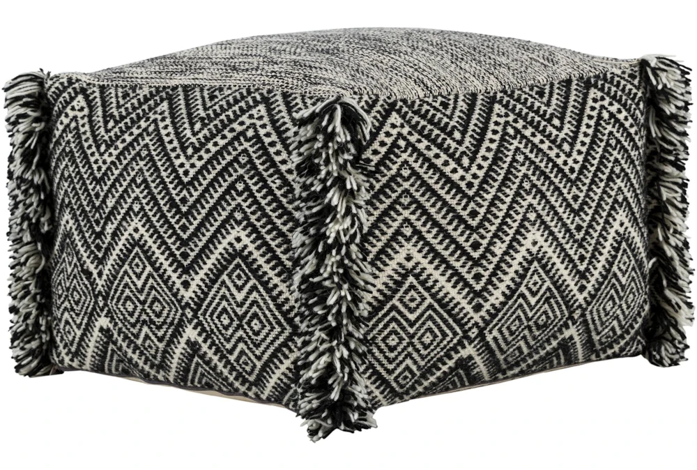 This modern Pouf in Black Cream with Fringe is the perfect addition to any living space, made of high-quality fiber for both durability and comfort. Its stylish Fringe feature adds a touch of elegance to your home decor, making it a must-have item for any trendy interior design.