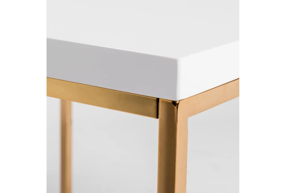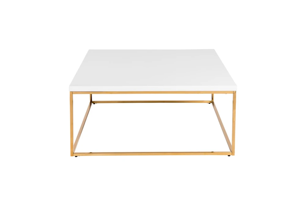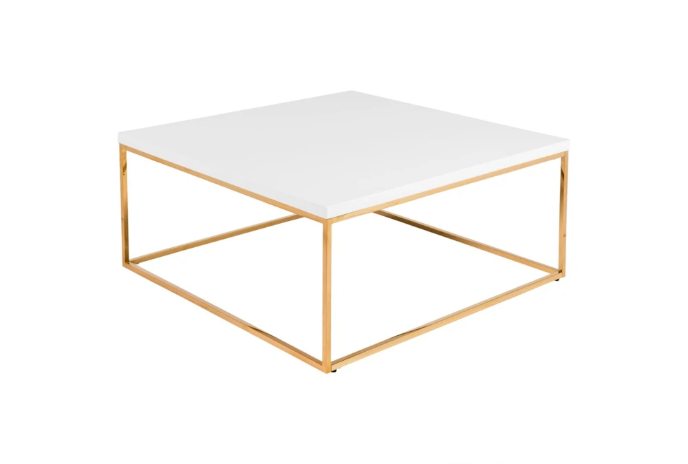 Teresa Square Coffee Table in White with Brushed High Gloss Gold Stainless Steel Frame