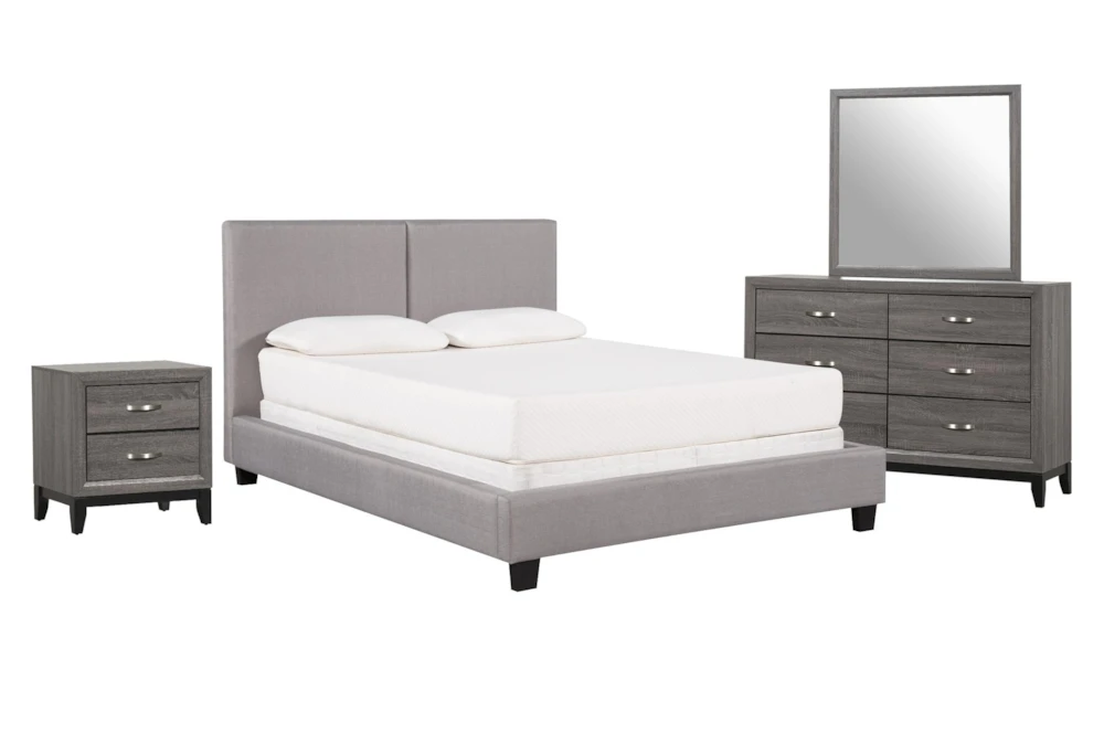 Bring serious style to the bedroom at a price you can’t pass up. The Rylee eastern king panel bed is a modern favorite that’s inviting and versatile. Rylee includes a fully upholstered frame with slate grey textured fabric and a center headboard seam for added visual interest. No matter your style, Rylee makes for the perfect complement to your contemporary bedroom furniture.
