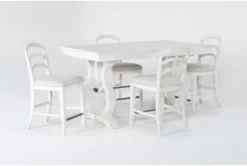 Martin 66″ Counter With Wood Back And Upholstered Counter Stools Set For 6