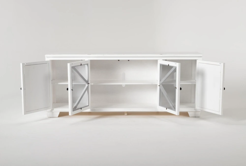 Be the first to review “Sinclair II White 78″ TV Stand With Glass Doors” Cancel reply