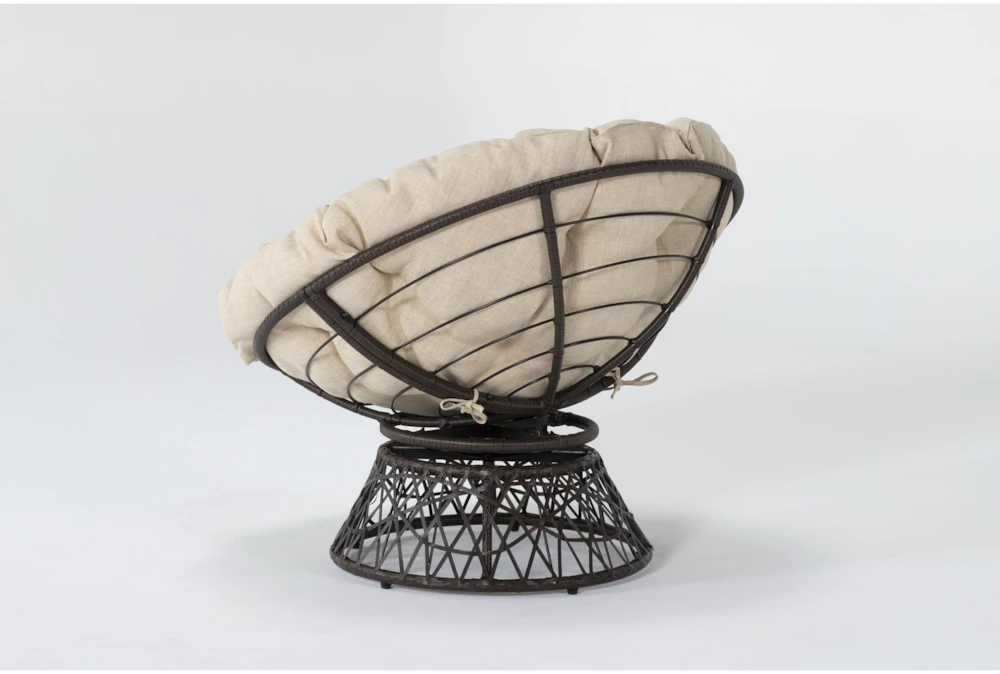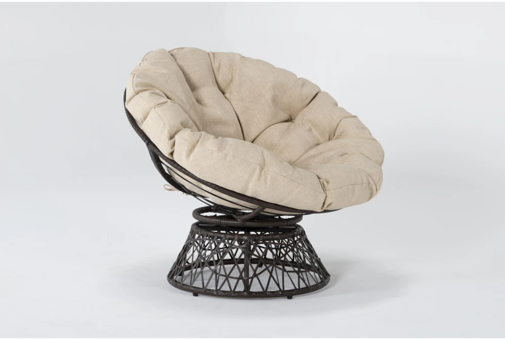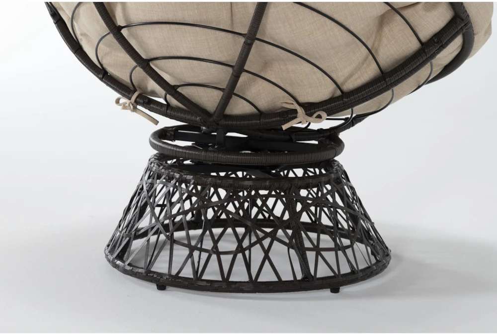 Soleil Cream Swivel Papasan Chair With Brown Wicker Frame