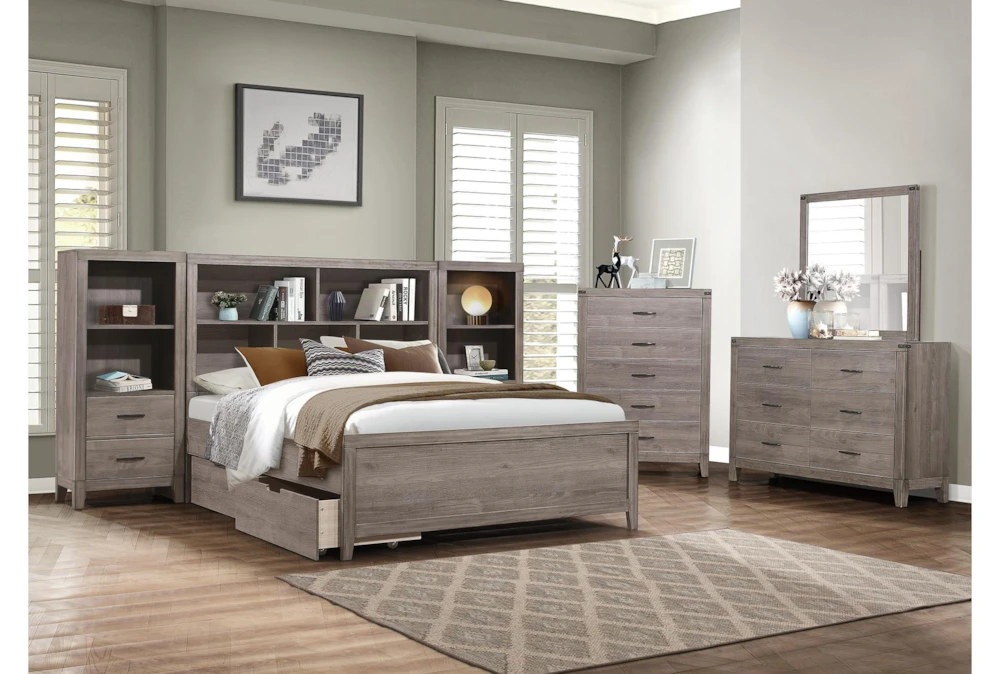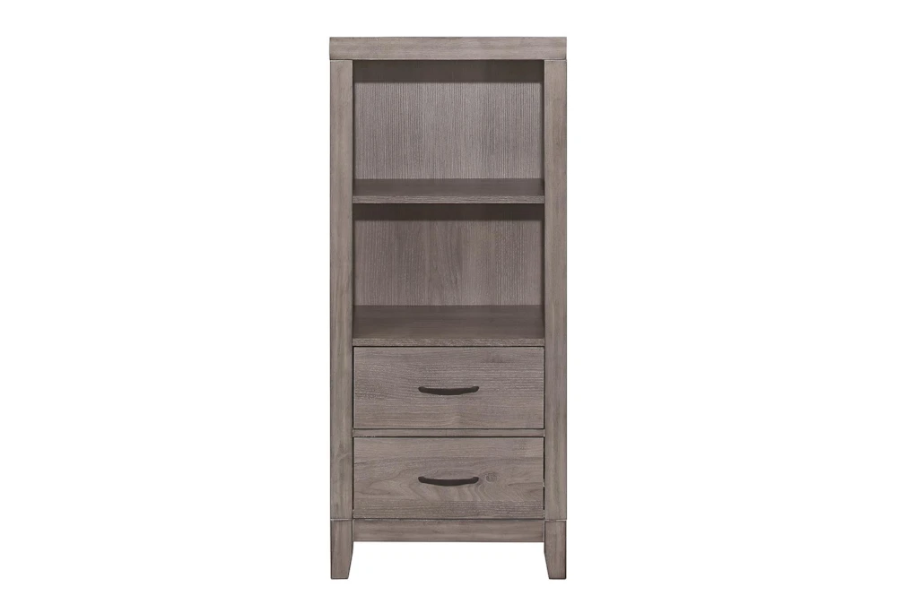 The Tatum Pier Nightstand is a stylish and practical addition to any casual bedroom, featuring ample storage with drawers and shelves made of premium melamine board, wood and engineered wood, with dovetail drawers and metal on metal center glides for added durability. This nightstand comes in a contemporary brownish gray color and requires some assembly.