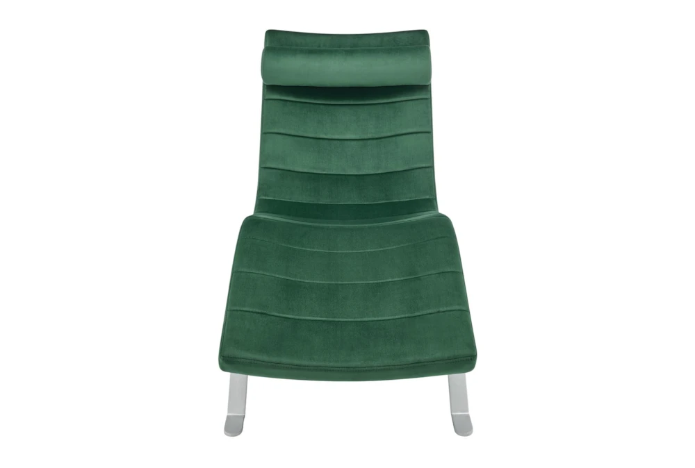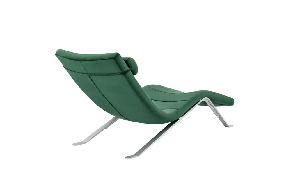The Tilda Green Velvet Chaise with Silver Base is a modern addition to your living room, made with velvet over foam and featuring an adjustable and removable headrest, all supported by a high gloss silver painted steel base. Assembly is required for this contract grade piece.