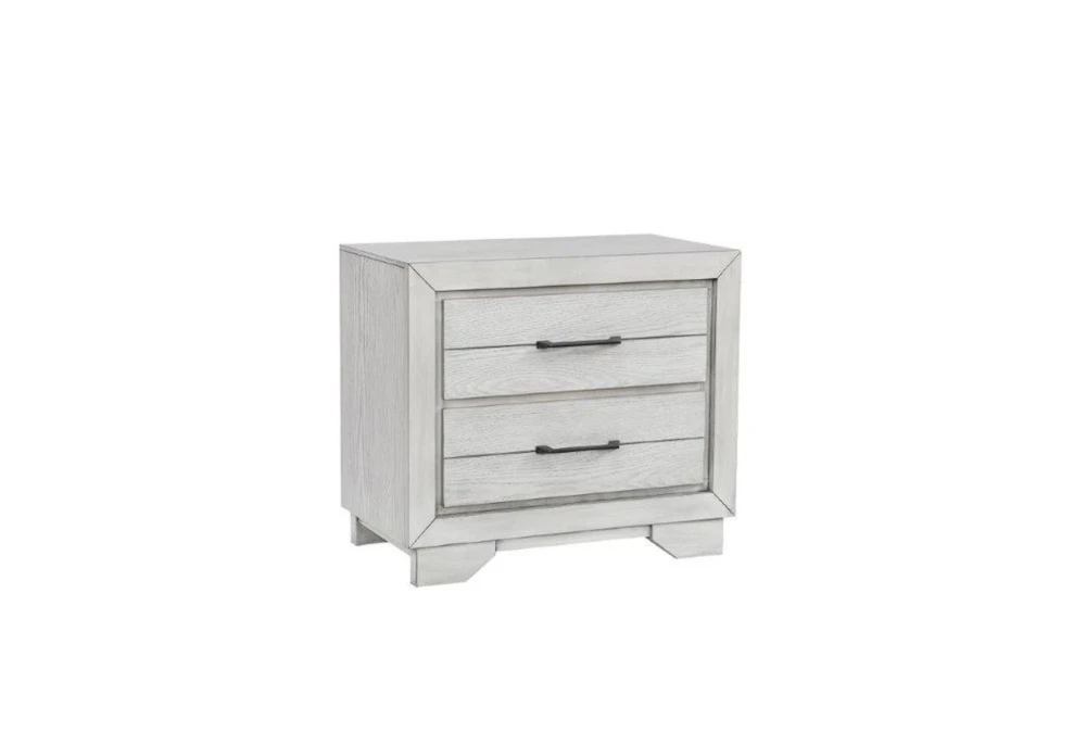 This contemporary 2 drawer nightstand is a stylish addition to any bedroom, crafted from durable wood and featuring a sleek white finish. The nightstand is made from ash veneer and solid rubberwood, providing a sturdy and attractive storage solution that complements any decor. The rubberwood construction ensures long-lasting durability and the 25″ size is perfect for bedside essentials.